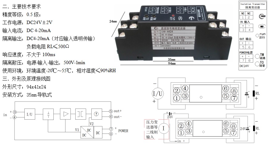 規(guī)范:4-20mA轉4-20mA 電源DC24V