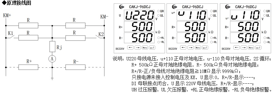 CAKJ-96DCJ絕緣監(jiān)察裝置,適用于DC300V以下直流不接地系統(tǒng)絕緣監(jiān)測。通過橋式比較電路及乒乓輔助判斷電路,準(zhǔn)確計算出直流母線正負(fù)極對地絕緣電阻(單母線絕緣降低或雙母線平衡絕緣降低),并給出不同信號,為直流系統(tǒng)故障分析提供依據(jù)。