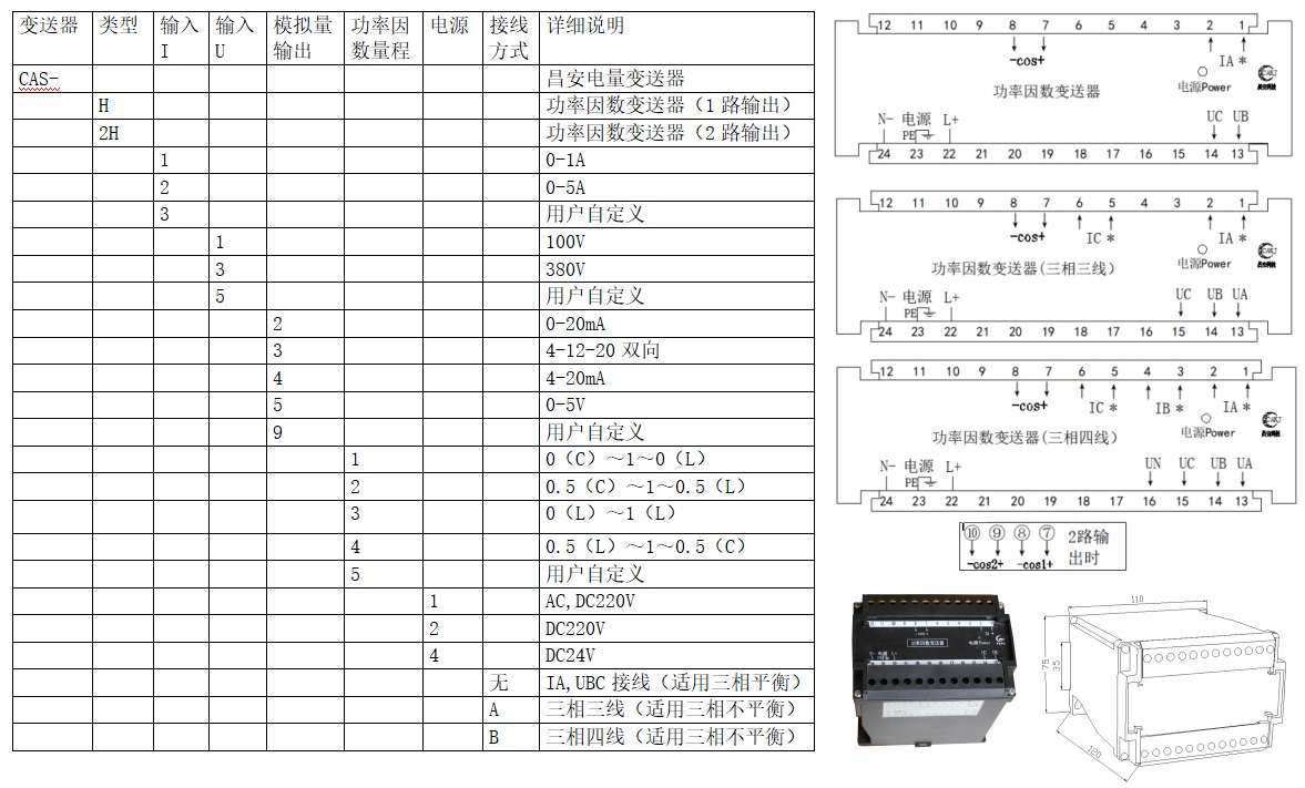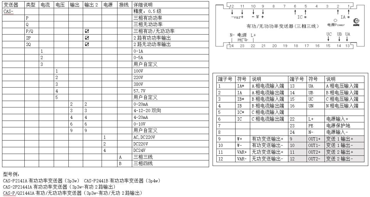 CAS系列功率變送器是將被測電流、電壓信號,通過內(nèi)部CPU計算出有功功率、無功功率、功率因數(shù)等參量并輸出4-20mA等模擬量的設備。